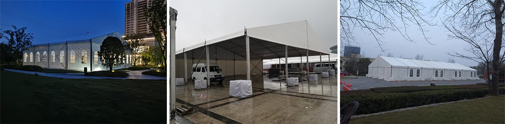 郑州篷房租赁不需要做什么,因为我公司的篷房支架全部采用高强度氧化铝合金材质,耐风防锈,篷布采用的是高阻燃双面pvc材质,有效的防雨遮阳。同时,我们将结合多年篷房租赁经验,根据数据进行计算,为客户搭建篷房,抵御活动当天的各种天气!最重要的是,我们有现场执行全程跟着活动,如果遇到意外天气状况时,我们也会主动协助客户解决问题,所以不用担心您的活动,放心交给我们就可以!