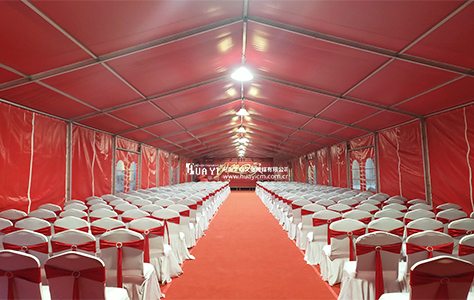 如何延长开封婚礼篷房租赁的使用寿命,第四点表现在对篷布的维护上。用完后的篷布可用水冲洗,或者湿毛巾擦拭,然后清洗后需要放置在通风的地方晾干,然后再收纳储存。第五点,为了延长婚礼篷房的使用寿命,除了要维护篷房的各个零部件,在使用中如果遇到恶劣的天气,还应该及时加固排除安全隐患,从而保证篷房的安全使用。