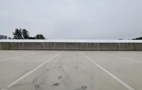 如今,多数篷房厂家多采用工厂预制构件模式。在工厂内,按照设计要求,将篷房的各类部件,如框架(铝合金或钢制等材料)、篷布(具备防水、阻燃、抗紫外线等功能的优质PVC篷布等)、连接配件等进行标准化生产加工。以人字篷房为例,人字梁、立柱等关键结构,在工厂精准切割、焊接(或采用螺栓连接等免焊接工艺,更环保且便于安装)、打磨,制成预制构件。之后,通过专业物流运输,将这些预制件安全、准时送达搭建现场,减少现场施工污染与时间成本,保障物料完整且高效进场。